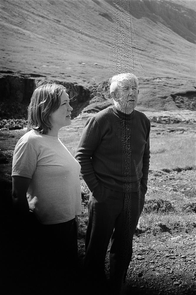 Mjóifjörður. Brekka, Dalatangi, júní 1970. Kona ásamt Vilhjálmi Hjálmarssyni.