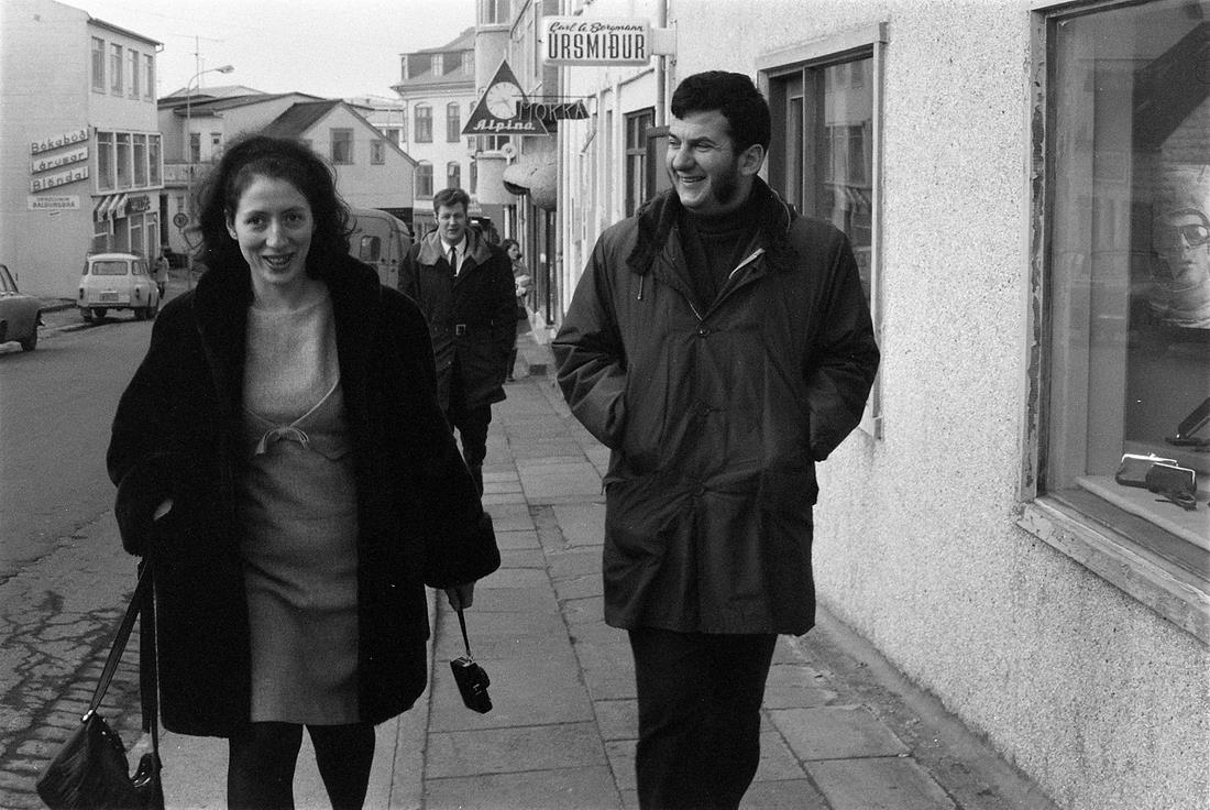 Skólavörðustígur, mars 1970. Fólk úti á götu.