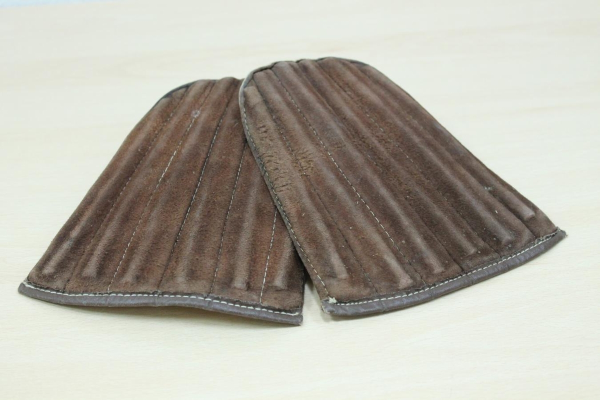 Legghlífar, meðal persónulegra muna á minningarsýningu um Bjarna Helgason (1928-2012) í Safnahúsinu Borgarnesi í okt. 2014 og gefnar safninu í kjölfarið.