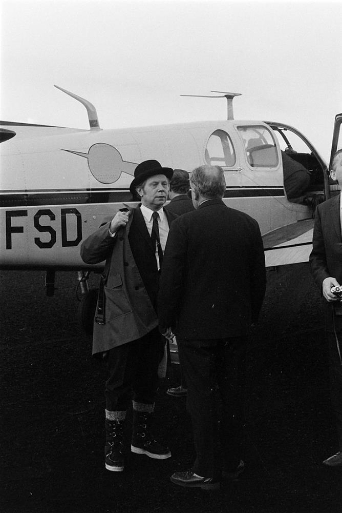 Vestmannaeyjagosið 1973, fyrsta nóttin. Kristján Eldjárn og Magnús H. Magnússon fyrir framan flugvél.