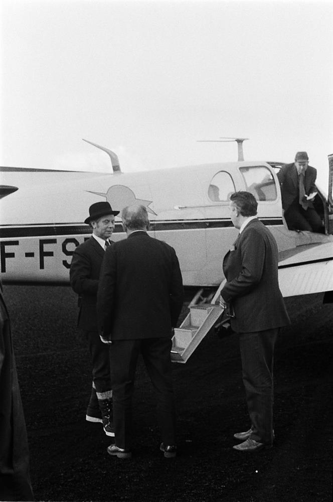 Vestmannaeyjagosið 1973, fyrsta nóttin. Kristján Eldjárn, Magnús H. Magnússon og tveir aðrir karlmenn standa við flugvél.