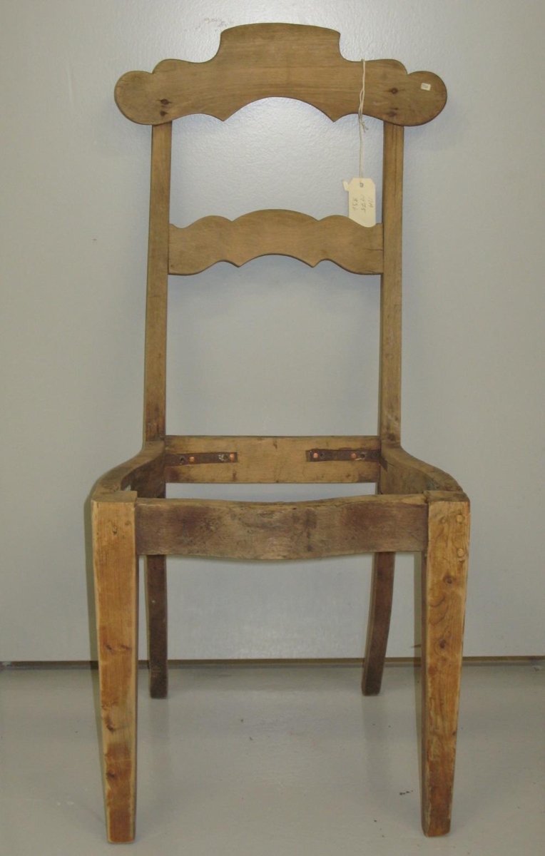 Sex rimar í bakið - íslensk smíði. Örlítið útskorinn á bakfjöl en vantar setu. Úr búi Sigurbjargar Þorsteinsdóttur (f. 30.12.1895, d. 20.05.1956).