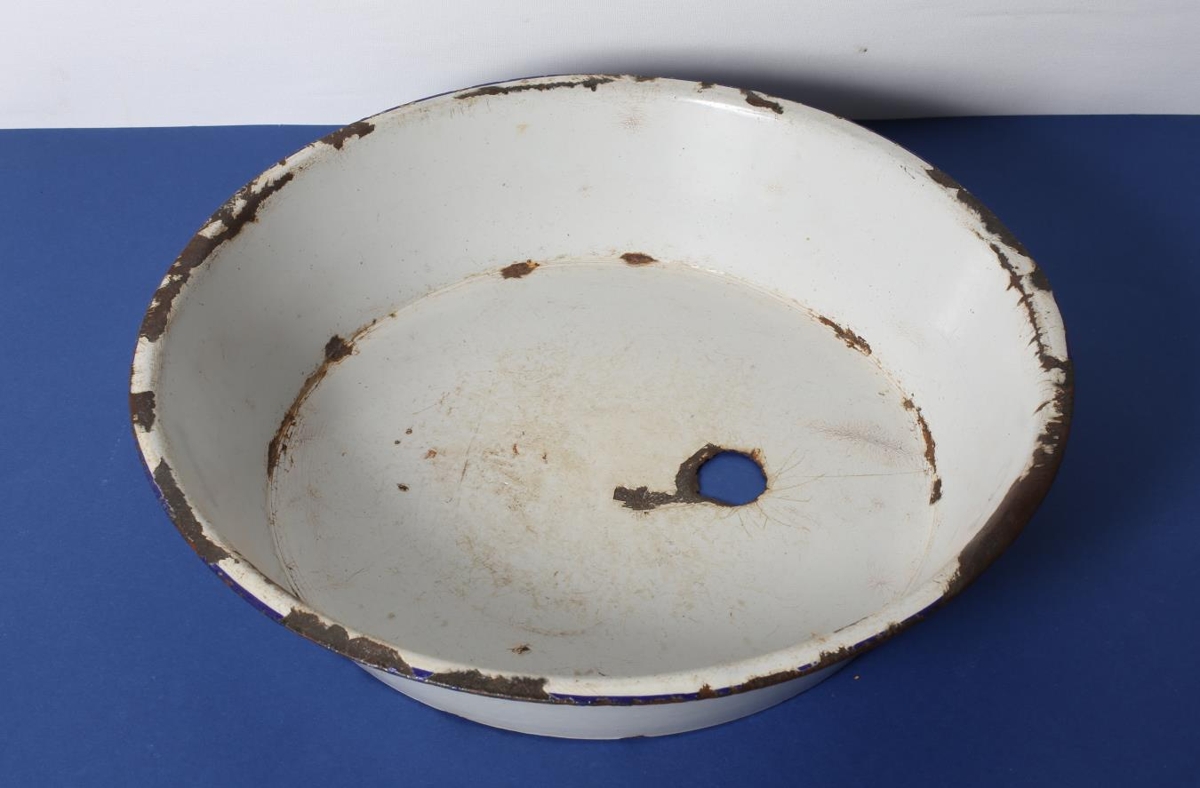 Hvítt emelerað mjólkurfat, afar lúið með gati í botninum. Var trúlega upphaflega notað sem rjómabiða, þ.e. rjóminn látinn setjast ofan á fyrir daga skilvindanna. Síðar til að hræra í rúgbrauðsdeig. Frá Droplaugarstöðum. Kom þangað með Agnesi Pálsdóttur frá Ási í Fellum (f.30.04.1880, d.02.01.1970).