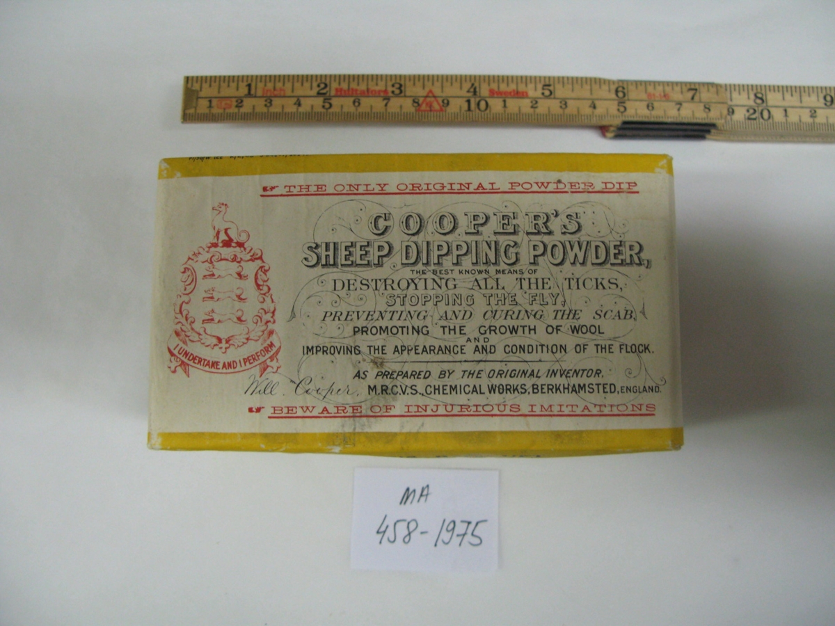 Coopers baðlyf. Áttu að vera 3 pakkar en aðeins 2 pakkar sjáanlegir. Til að baða sauðfé við kláða.