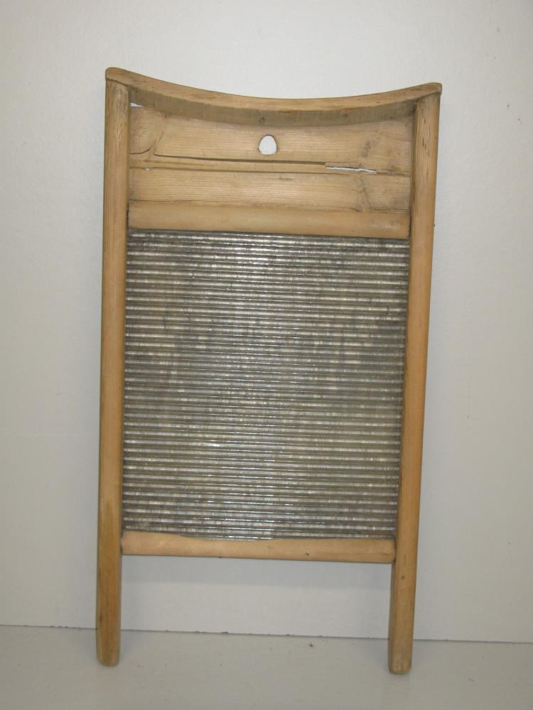 Þvottabretti með hrufóttu gleri og tréramma. Frá Hafrafelli.