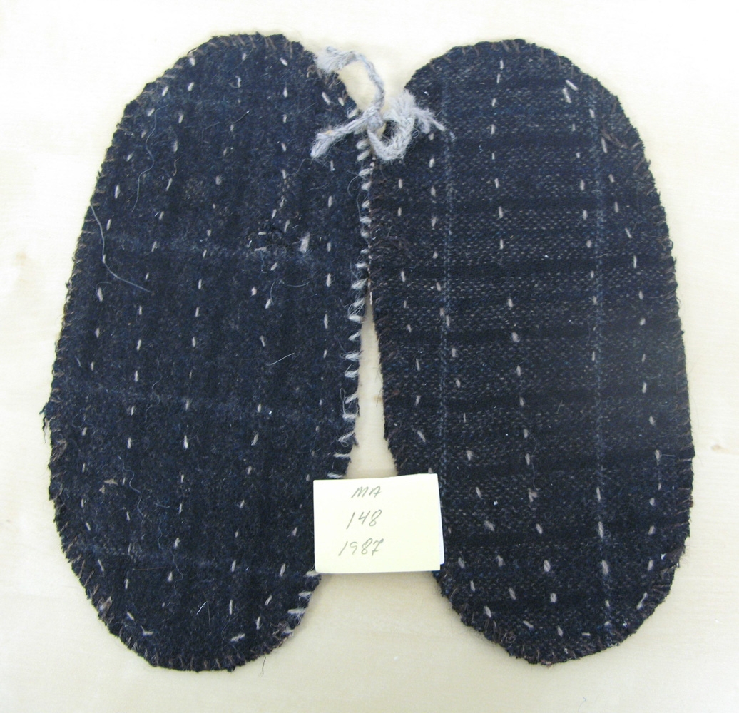 Stangaðir leppar úr svörtu og gráköflóttu vaðmáli. Kastaðir á brúnum. Fremur illa gerðir. Bjarni Árnason (4.10.1885 - 4.12.1965) var heimilisfastur á Skeggjastöðum en var á ýmsum bæjum, síðast á hreppsframfæri. Hann var frá Seyðisfirði og dó þar á elliheimilinu. Bjarni gæti einnig hafa átt nr. 146-148.