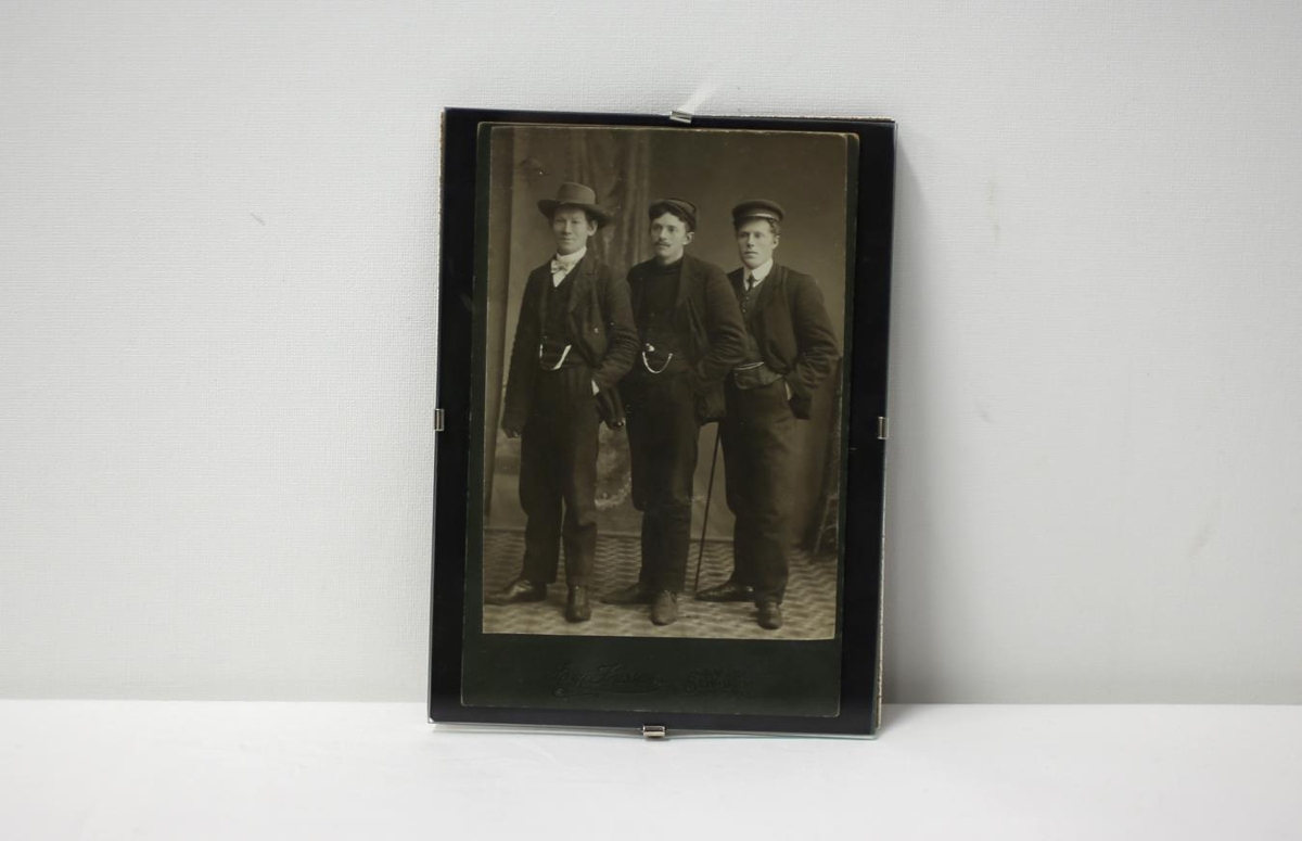 Mynd af þrem karlmönnum og er Vigfús fyrir miðju. Úr eigu Vigfúsar Sigurðssonar frá Egilsstöðum í Fljótsdal (f.03.08.1880, d.13.09.1943).