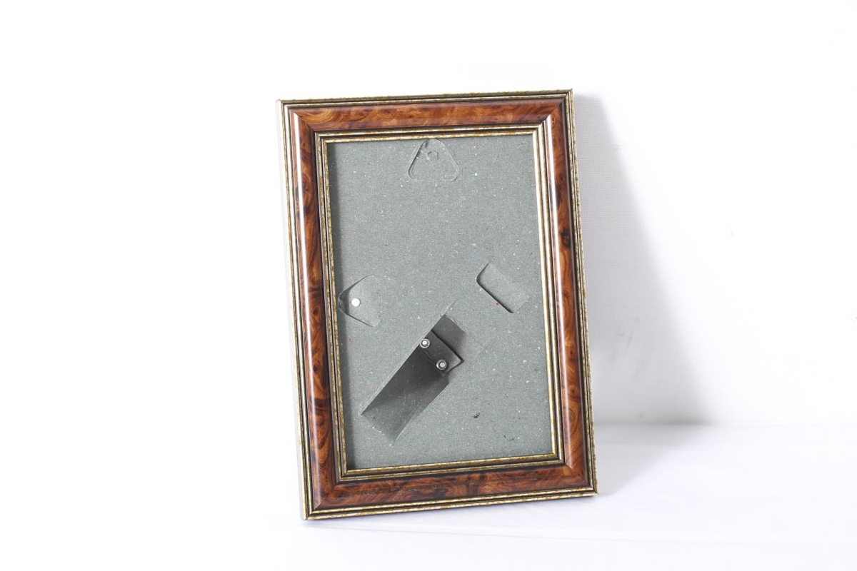 Ljósmynd í lit, í brúnum ramma með tvöfaldri gylltri umgjörð. Myndin er af Þóru Þórarinsdóttur (f.28.11.1890) og Þóri Elíassyni (f.01.11.1903) við nýja bæinn á Lindarhól sumarið 1973. Myndin er geymd á Héraðsskjalasafni en ramminn í geymslu Minjasafnsins.