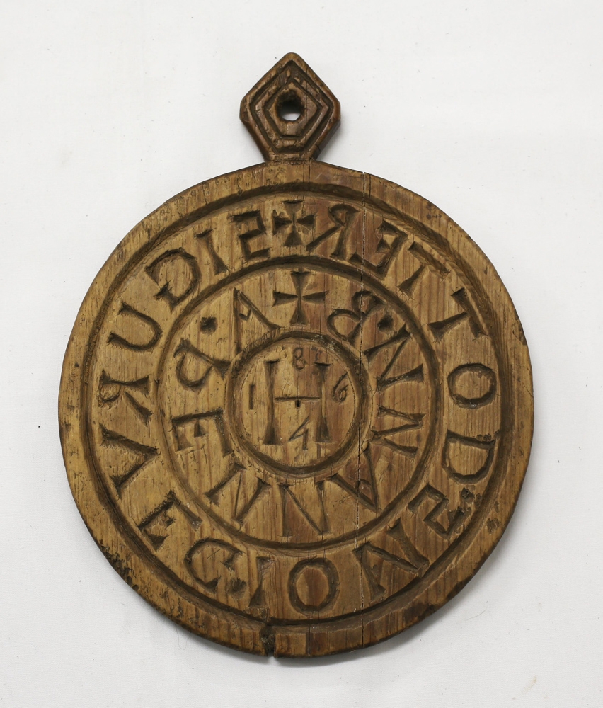 Kringlóttur platti. Áletrað með spegilskrift: "Sigurveig Jónsdóttir á þennan B". Í miðjunni er "H" og ártalið 1864 í kring. Fannst á Háalofti á Rangá í Hróarstungu.