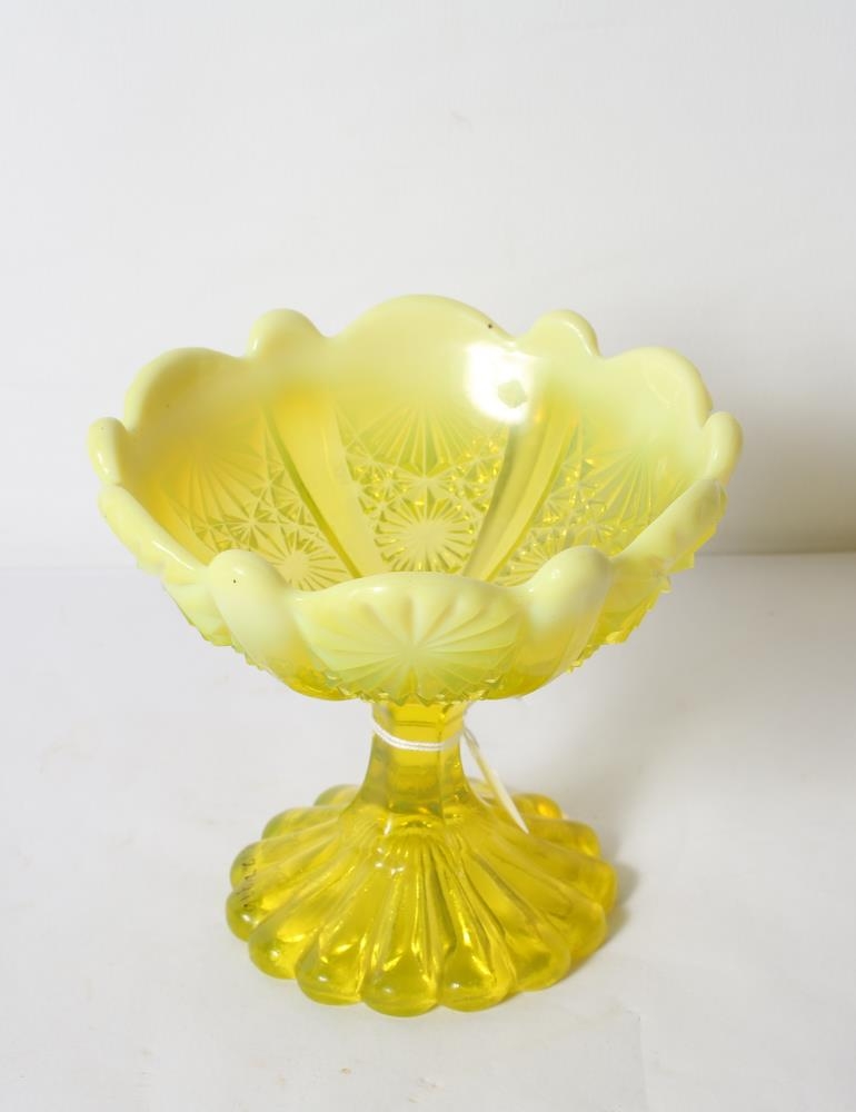 Gult sykurkar, á fæti með stjörnumynstri úr glærum kristal en efst er hann ekki gegnsær. Úr búi foreldra gefanda, Stefáns Jónssonar (f.12.02.1893, d.01.01.1968) frá Njarðvík og konu hans, Sigurborgar Sigurðardóttur (f.09.08.1890, d.04.10.1969) á Ekru í Hjaltastaðaþinghá.