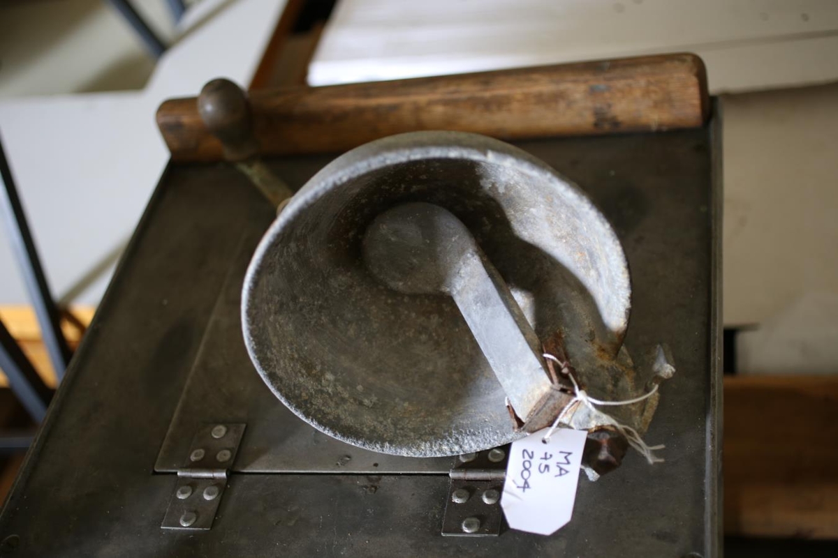 Sjálfbrynnari (vatnsbrynnari) fyrir kýr/skepnur. Hringlaga skál með tungu í miðju. Er kýrnar drukku þrýstist tungan niður og opnaðist þá fyrir vatnið og safnaðist það þá í skálina. Tekið úr útihúsi á Hólahjáleigu í Hjaltastaðaþinghá. Síðasti ábúandi þar var Guðmundur Halldórsson 1932-1940 og 1951-198?