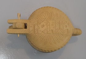 Askur úr birki, með máluðum viðargjörðum, skorið í lokið með höfðaletri. Askurinn er frekar lítill og renndur úr heilum bol. Lokið er aðeins íhvolft að innan og tálgað upp úr því með útskurðarjárni og það látið halda sér. Lokið er skorið með höfðaletri og eru ellefu lauf sitthvoru megin við letrið. Spaðinn sem gengur út á haldið er rifflaður, og höldurnar eru líka skornar. Það eru skornar 16 rendur í belginn sem eiga að tákna stafi. Úr dánarbúi Sveins Einarssonar frá Hrjóti í Hjaltastaðaþinghá. Sveinn sjálfur bjó til hlutinn.