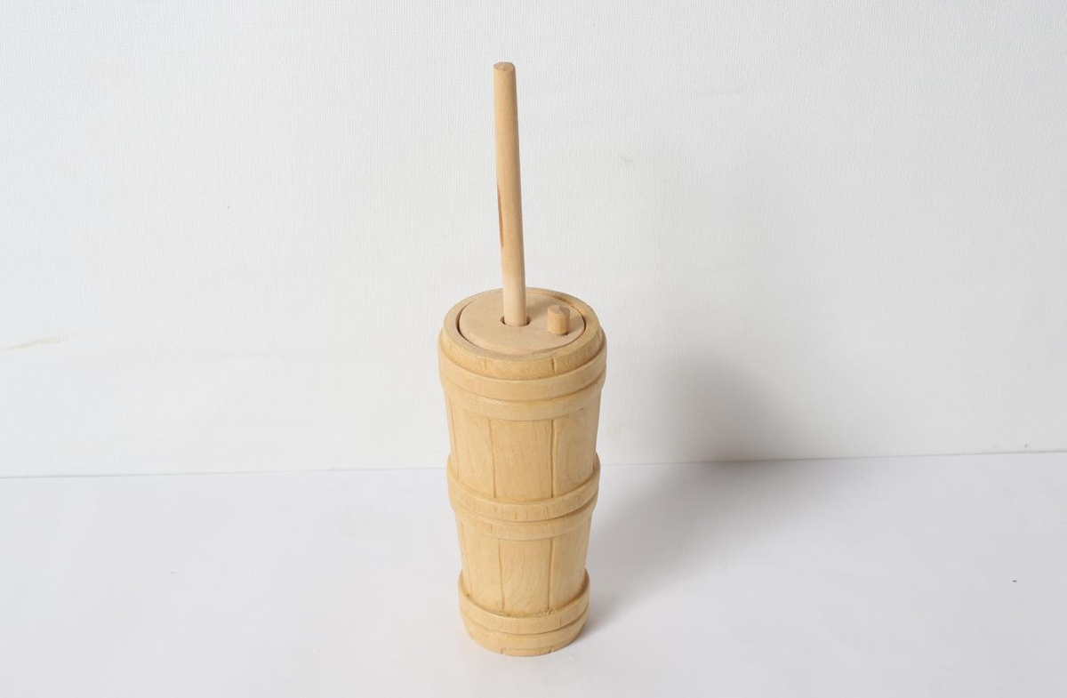 Lítil eftirlíking að strokk. Úr dánarbúi Sveins Einarssonar frá Hrjót í Hjaltastaðaþinghá. Sveinn sjálfur bjó til hlutinn.