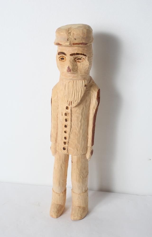 Karl, tálgaður í birki. Í hnepptum jakka og stígvélum. Með skegg og hatt. Úr dánarbúi Sveins Einarssonar frá Hrjót í Hjaltastaðaþinghá. Sveinn sjálfur bjó til hlutinn.