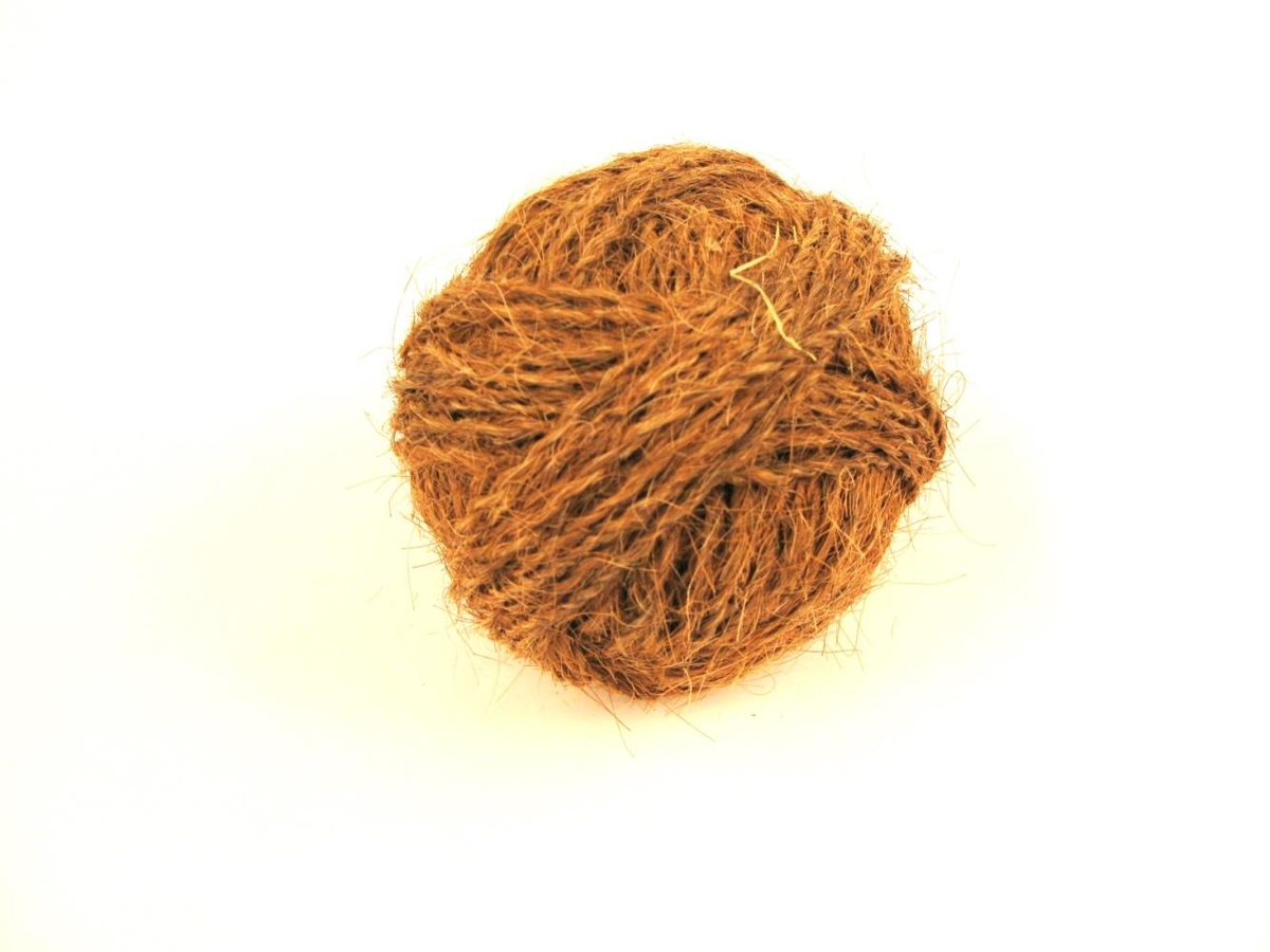 Rauður hnykill af tvinnuðu hrosshári til að nota í gjarðir og reipi.