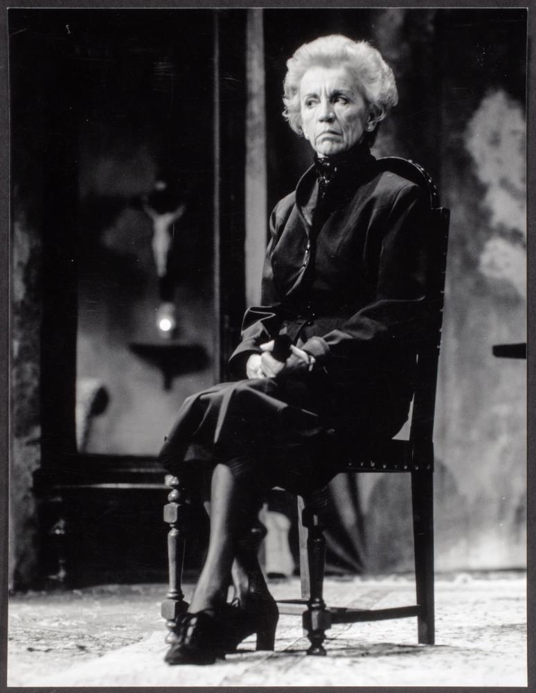 Leikhús - Frá ýmsum sýningum. KOna situr á stól á sviði.