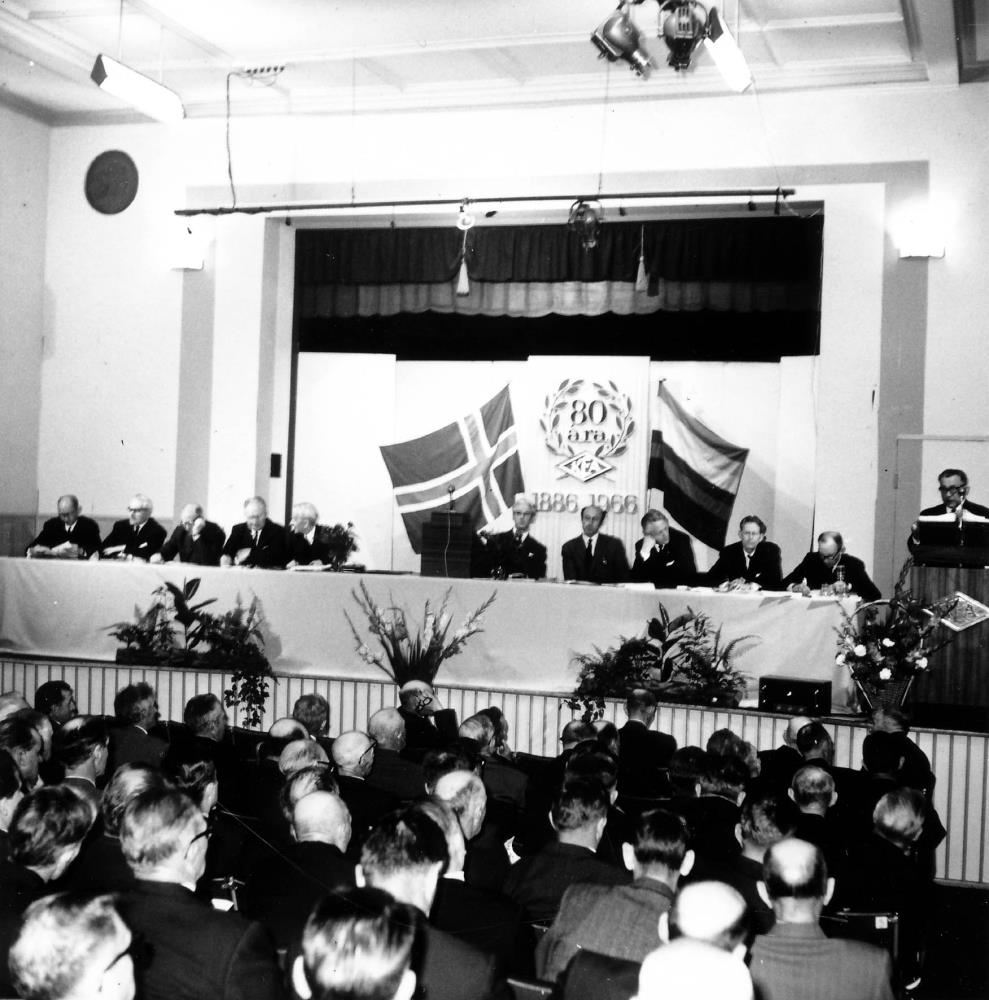 Aðalfundur KEA 1966, á 80 ára afmælinu í Samkomuhúsinu á Akureyri. Stjórn, kaupfélagsstjóri, starfsmenn fundarins, gestur (form. SÍS) og fulltrúar.