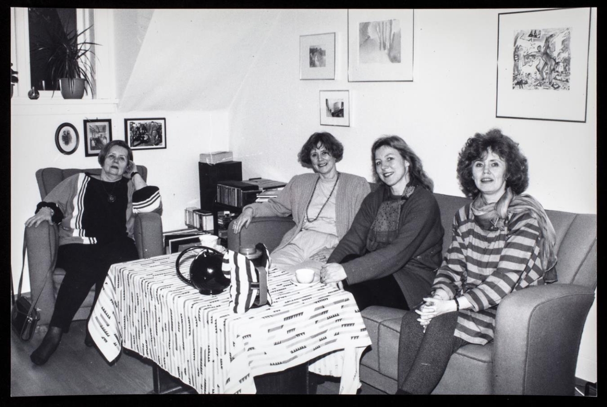 Rithöfundar: Vilborg Davíðsdóttir, Iðunn og Kristín Steinsdætur og Ásta Ólafsdóttir. Fjórar konur sitja í stofu.