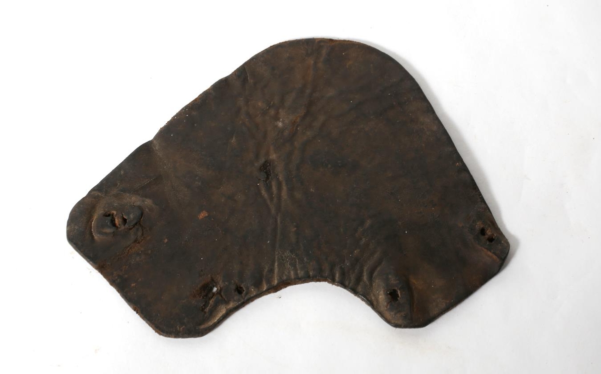 Brún leðurpjatla með fötum á kanti. Virðist notað. Faðir gefanda, Óli Einarsson (f.22.8.1878 d.18.11.1965), bóndi og söðlasmiður frá Þingmúla í Skriðdal átti söðlasmíðaáhöldin og það sem með fylgdi. Óli vann við söðlasmíði frá unga aldri öll sín búskaparár.