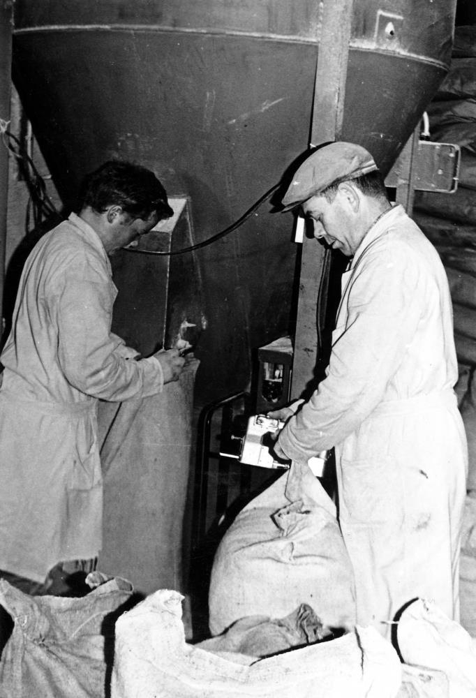 Saumað fyrir fóðurblöndupoka.