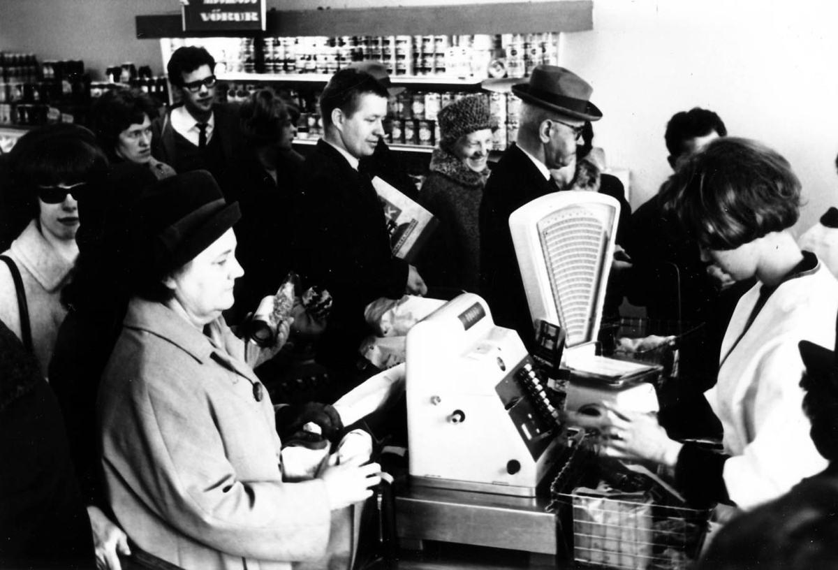 Kjörbúð KEA. Páll Einarsson með hattinn.