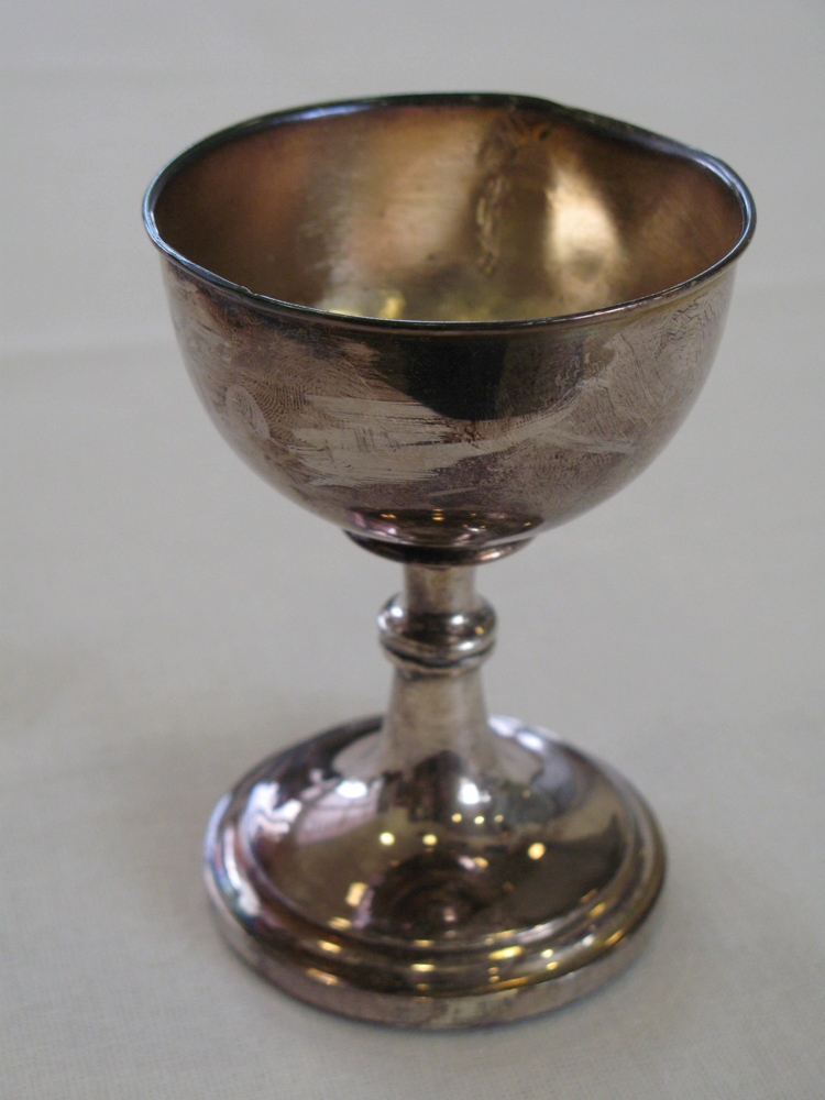 Silfurbikar eða staup. Úr búi Guttorms Pálssonar, skógarvarðar á Hallormsstað (f.12.07.1884 d.05.06.1964). Jólagjöf 1908 til Sigríðar Guttormsdóttur, fyrri konu Guttorms Pálssonar frá sr. Guttormi í Stöð.