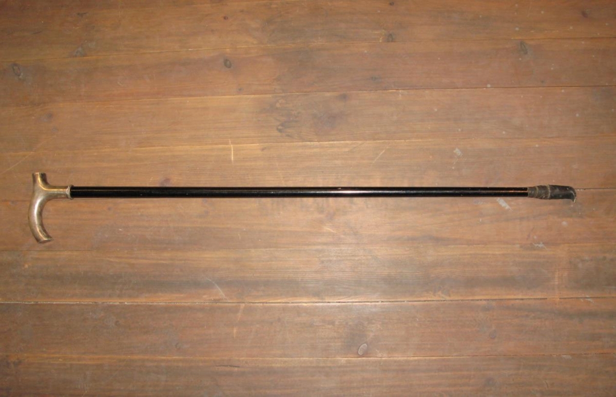 Silfurbúinn, svartur stafur, áletrun fremst á handfangi: "Guttormur Pálsson Hallormsstað". Aftan á "12.7.1954". Frá sveitungum. Úr búi Guttorms Pálssonar, skógarvarðar á Hallormsstað (f.12.07.1884, d.05.06.1964). Afmælisgjöf til hans sjötugs frá sveitungum.