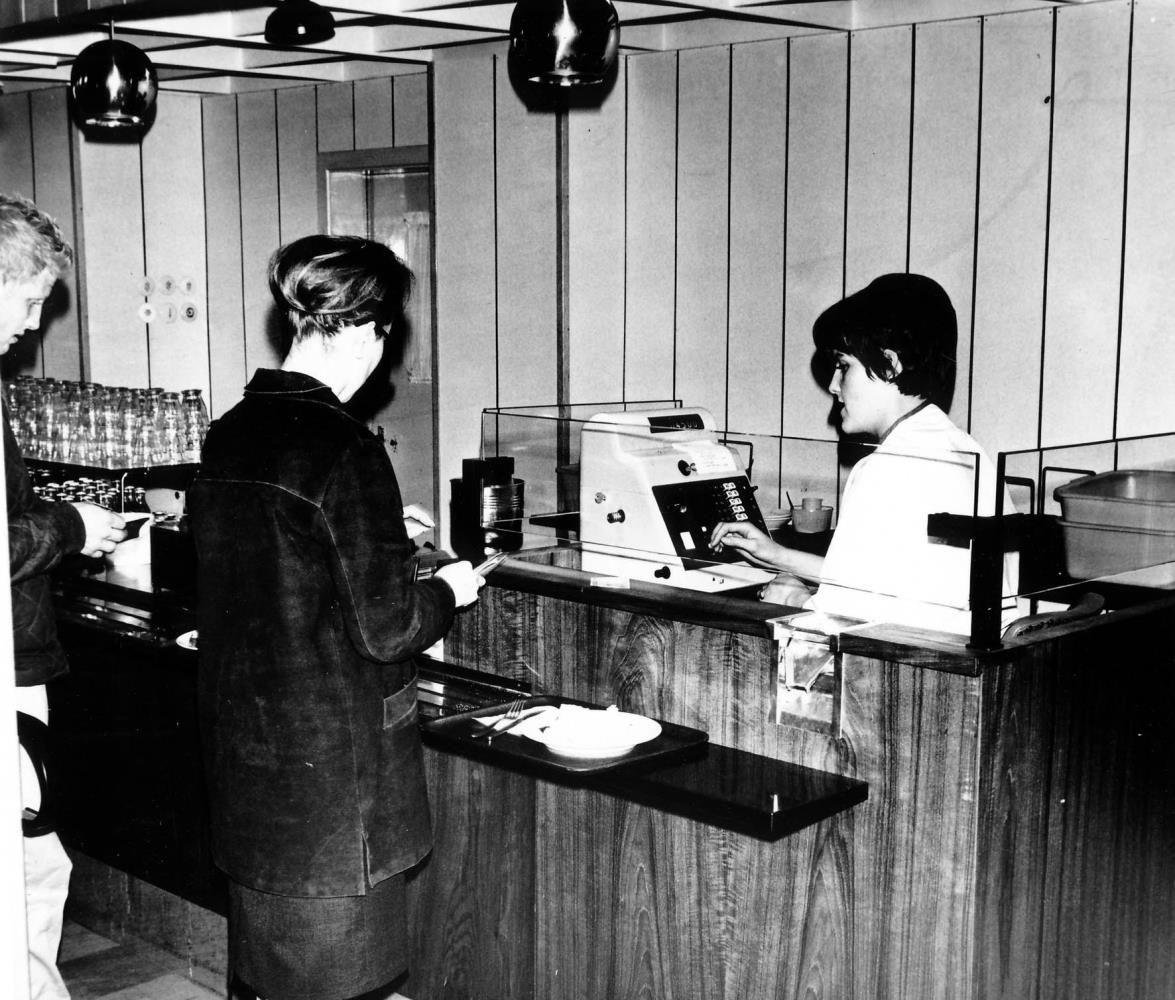 Kaffiterían, Þórgunnur á kassanum, og Pálmi á Kroppi nr. 2 í röðinni.