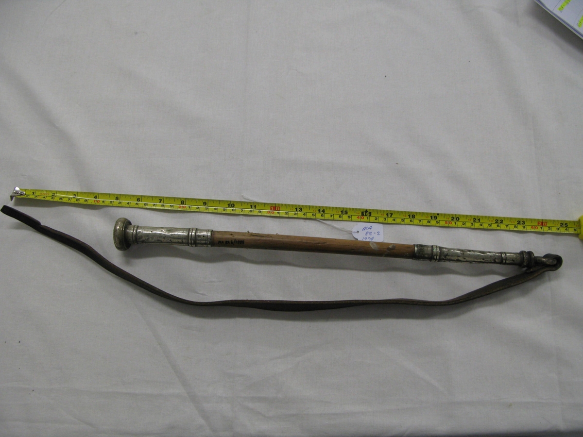 Silfurbúið svipuskaft með þremur hólkum, laufað, munstrað með rifum.
