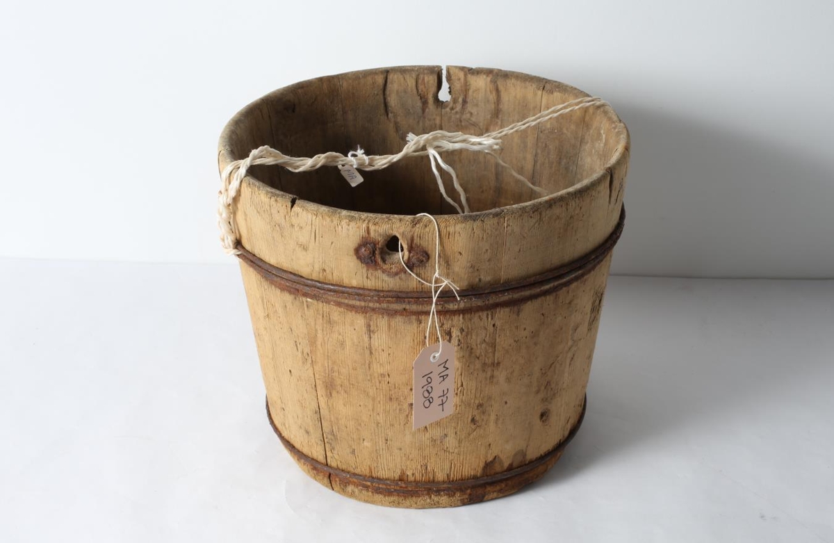 Stafaílát, gyrt með sívölum járnvír. Í aðfangabók er getið um tvær skyrbiður frá sama gefanda, annað síðan notað sem kálfadallur, og þá boruð göt og sett handfang. Þetta mun vera það ílát nema hvað handfangið vantar.