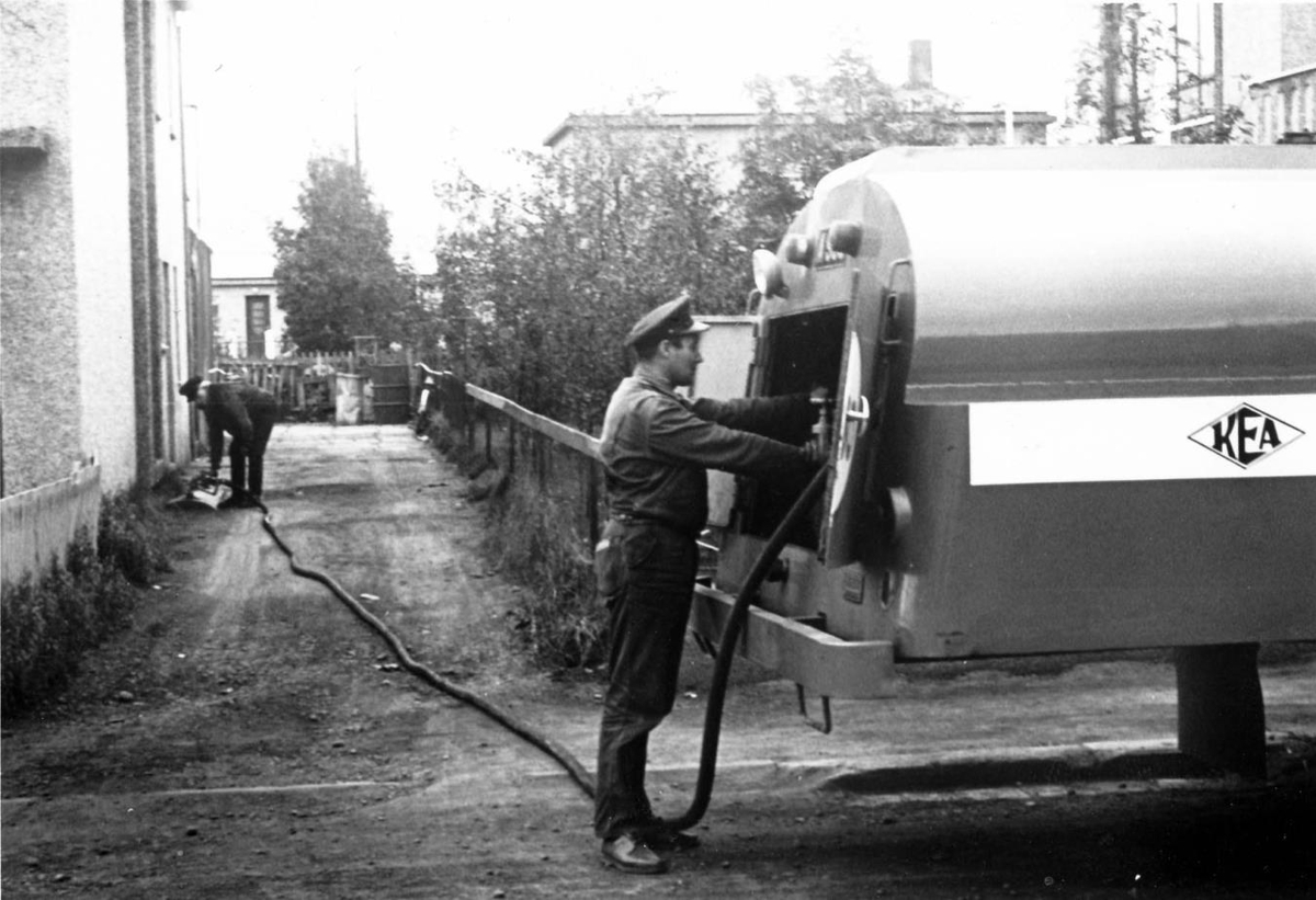 Olaí til húshitunar afgreidd á Oddeyrinni af Olíusöludeild KEA.