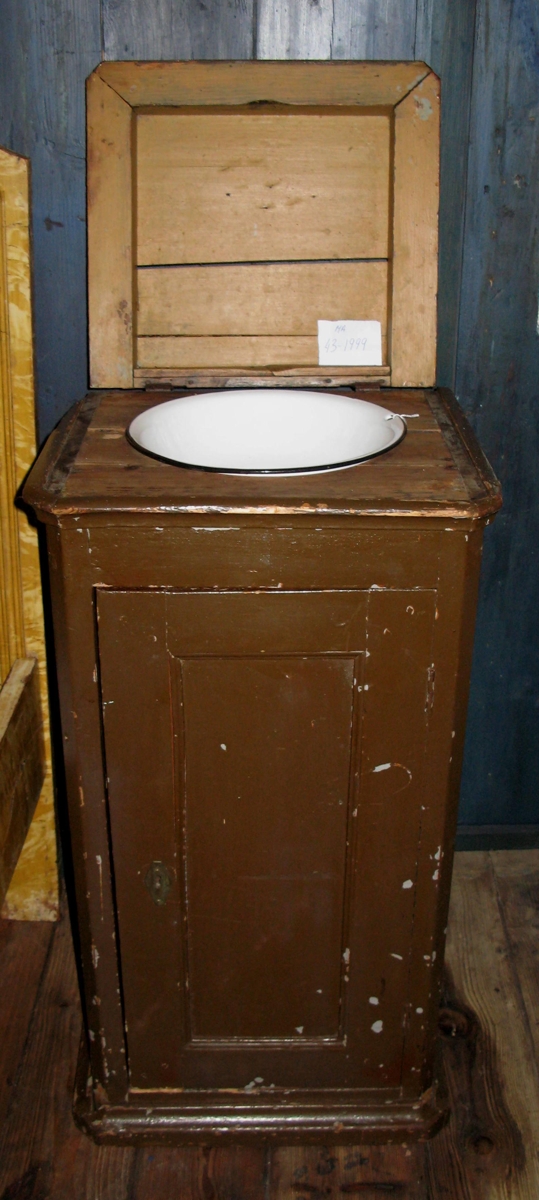 Brúnn skápur með loki sem fellur ofan yfir skálargatið. Hurð fyrir framan og hilla inni í skápnum fyrir könnu. Málaður. Var upphaflega í eigu sr. Magnúsar Bl. Jónssonar í Vallanesi sem uppi var um aldamót. Varð eftir í Vallanesi er hann flutti þaðan.