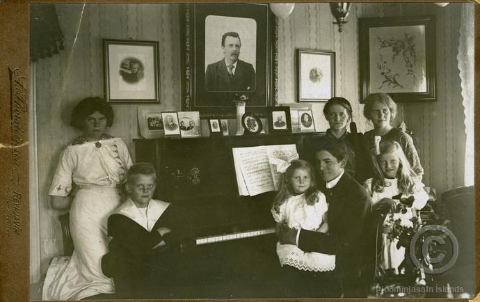 Heimili Jóns Steinþórs Norðmann kaupmanns og Jórunnar Einarsdóttur. Stór mynd af honum hangir á vegg yfir póanói og eru Jórunn ekkja Jóns og börn þeirra við píanóið.