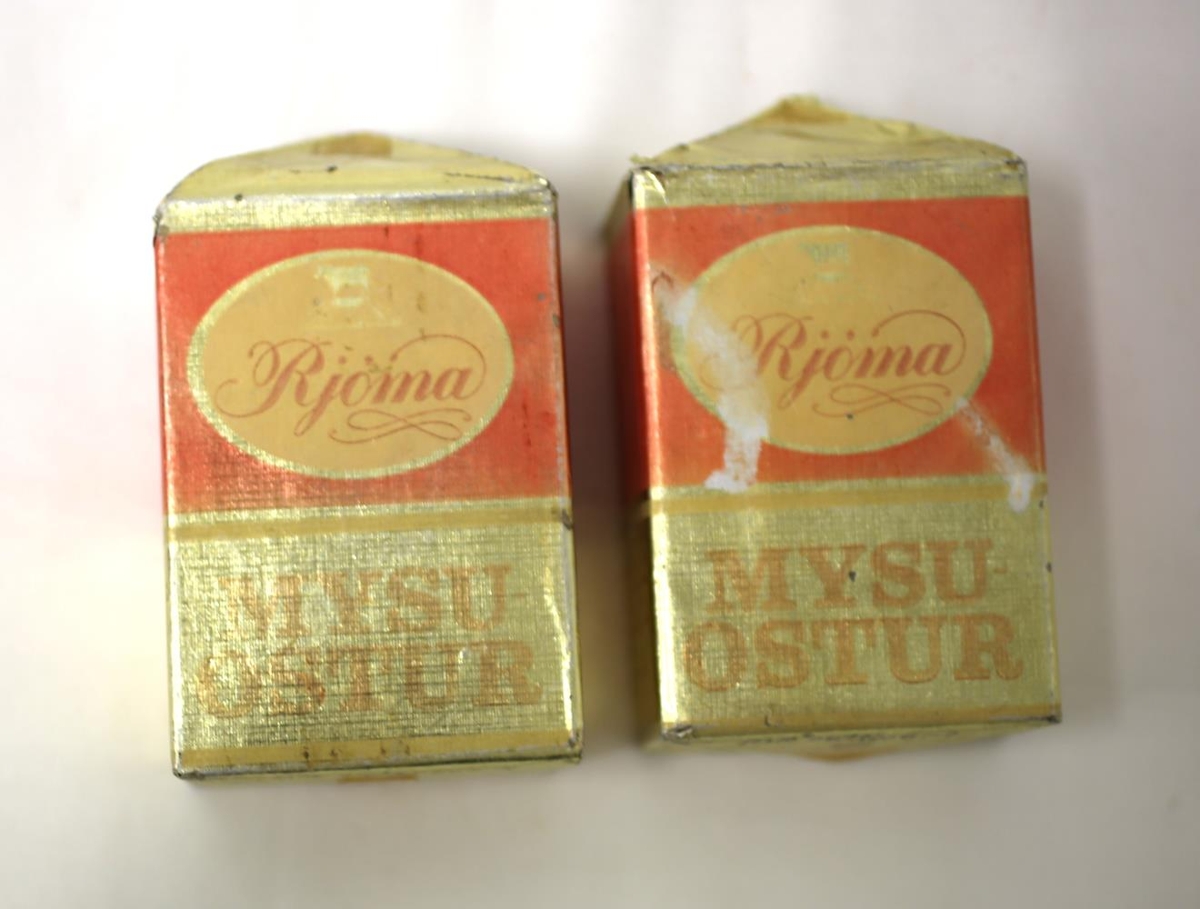 Pakkning utan af mysuosti, gylltur og rauður. Áletrun: Auðhumla - rjómaostur. Mjólkurafurðaumbúðir frá Mjólkurstöð Kaupfélags Héraðsbúa.