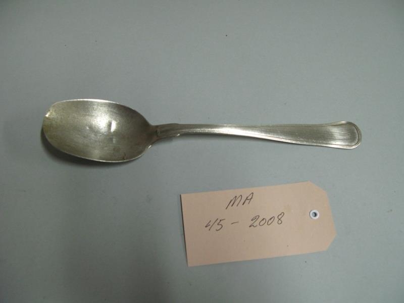 Skeið úr einhverskonar silfurmálmblöndu. Skeiðin svolítið eydd að framan. Var í eigu Guðmundar Þorfinnssonar, smiðs frá Litla-Steinsvaði og afa gefanda, Sigríðar Jónsdóttur.