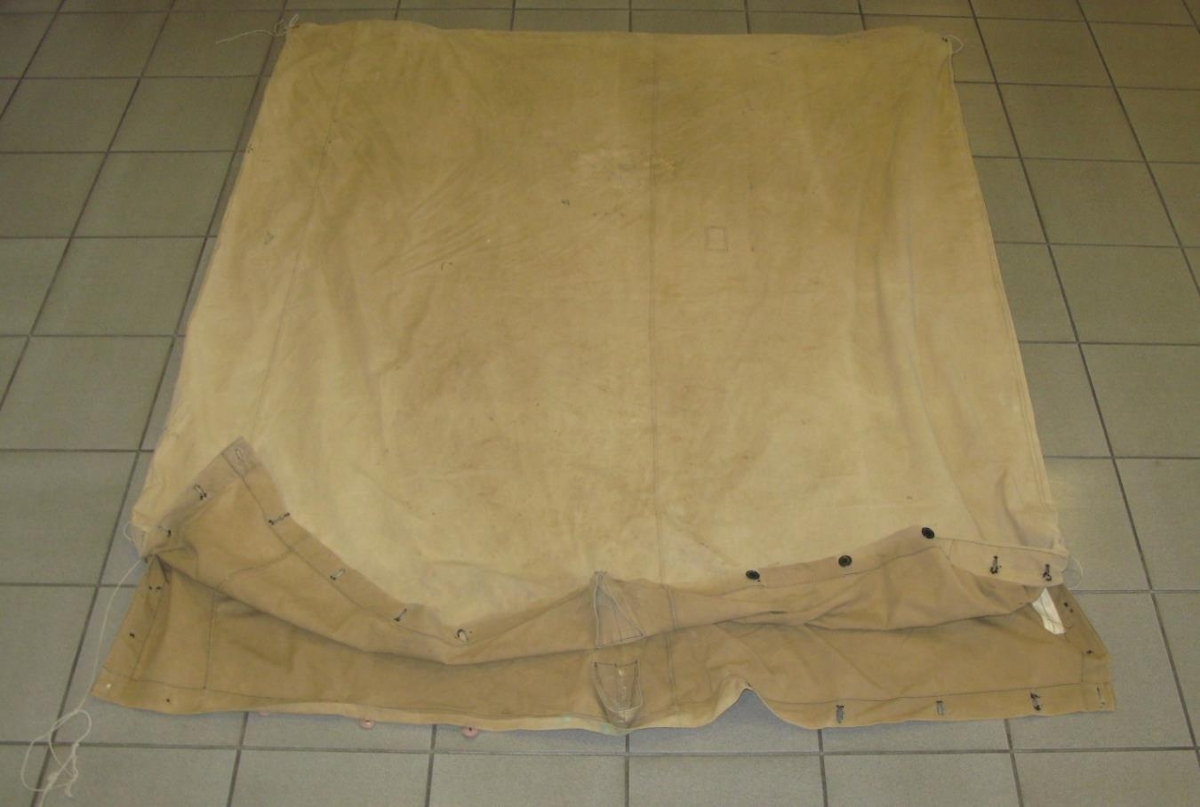 Gamalt brúnt tjald úr segldúk. Tjaldið er að öllum líkindum heimasaumað og á einum stað hefur það verið bætt. Tjaldið átti afi gefanda sem hét Sigurjón Jónsson frá Tjörnum í Austur-Landeyjum sem var mikill útivistarmaður og dvaldi oft inn í Þórsmörk ásamt bróður sínum listmálaranum Eyjólfi Eyfells.