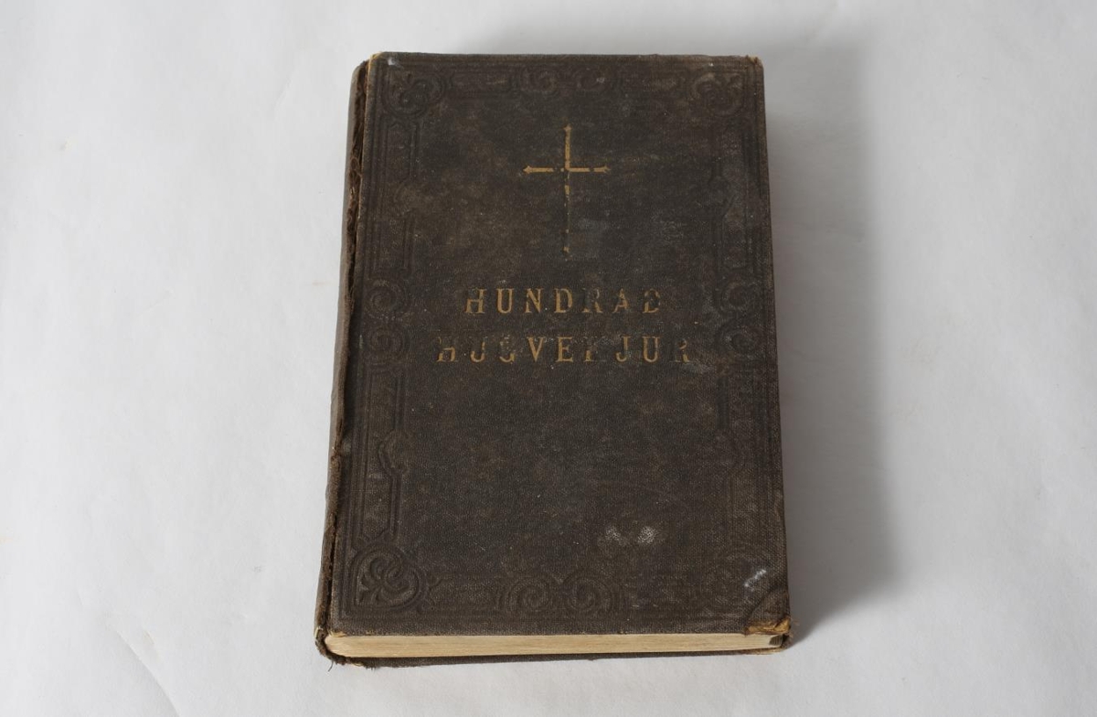 Hundrað hugvekjur til kvöldlestra eftir íslenskum kenningum. Útgefin af Prestafélagi Íslands, Anno MCMXXVI. Merkt fremst Haraldi Eyjólfssyni og "Vilborg Jónsdóttir, frá Bjössa". Fannst á Þorvaldsstöðum í Skriðdal þegar verið var að að rífa gamla bæinn.