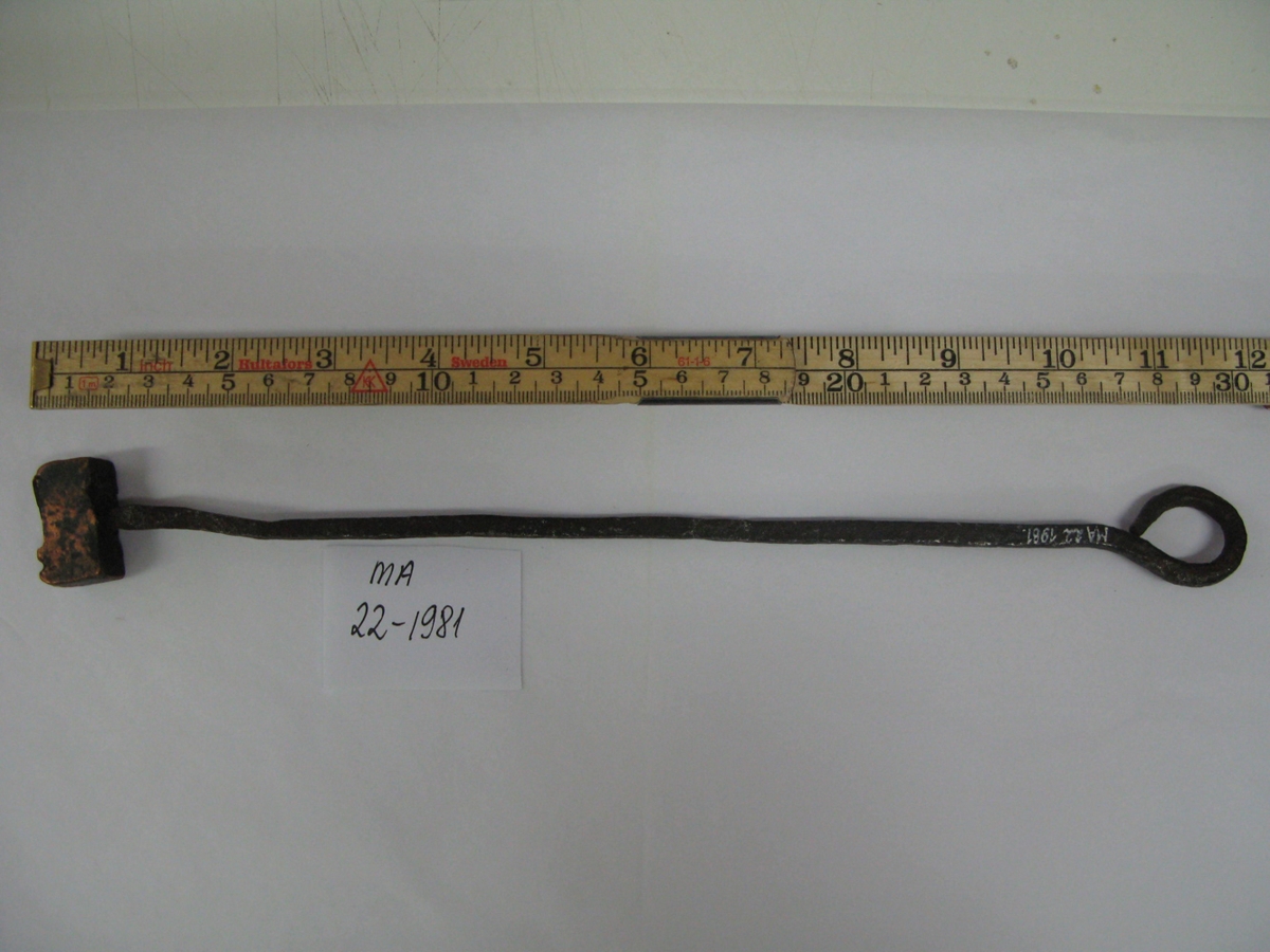 Koparhaus með "Á" og "H". Heimasmíðað. Halldór Ármannsson, bóndi í Snotrunesi átti járnið og eru hans stafir á því. Hann var faðir gefanda.