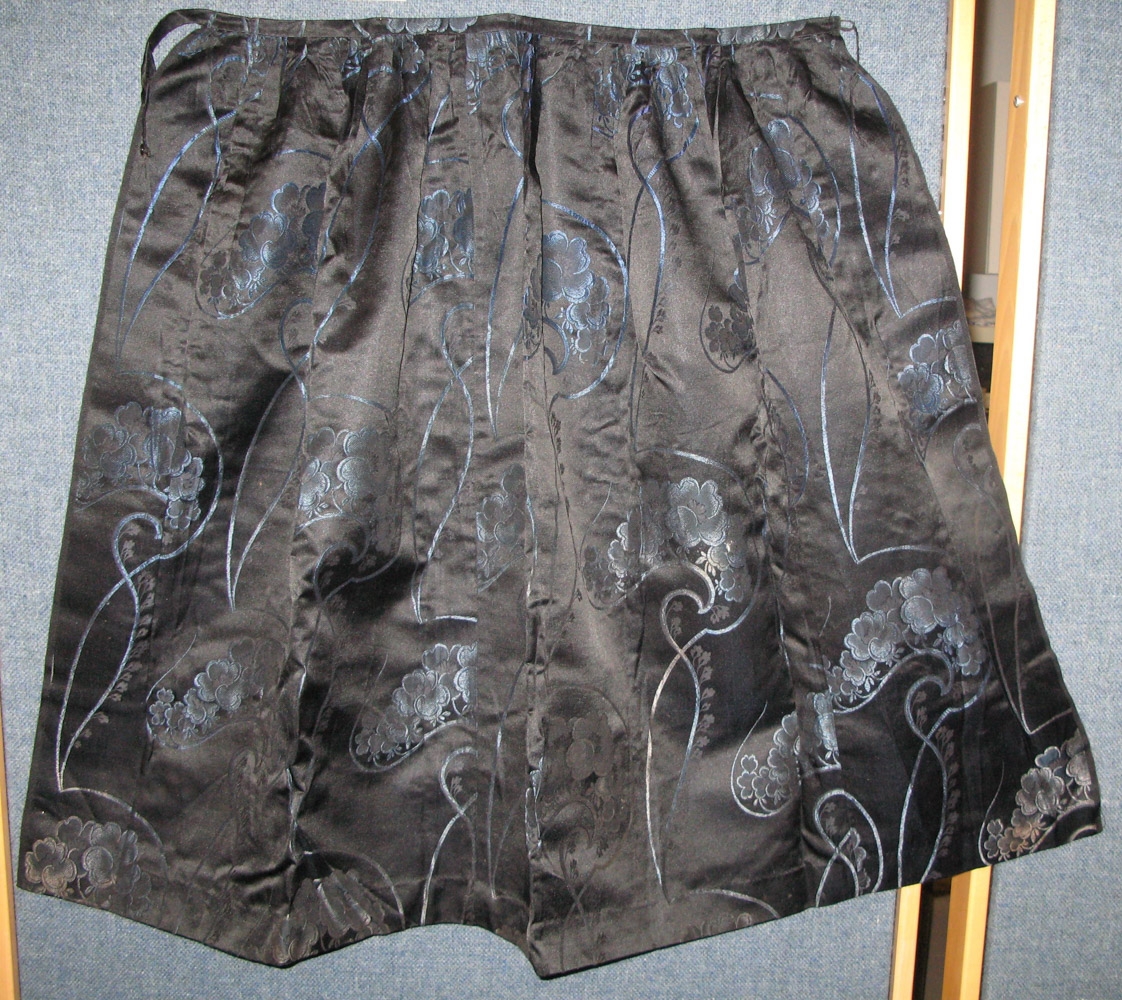 Svört peysufatasvunta með bláu rósamynstri. Giftingarsvunta ömmu gefandans, Sigrúnar Pétursdóttur frá Galtastöðum f. 1898, d. 1932. Faðir hennar Pétur Einarsson byggði upp baðstofuna á Galtastöðum fram. Sigrún varð húsmóðir á Gröf í Eiðaþinghá. Notað við þjóðbúning.
