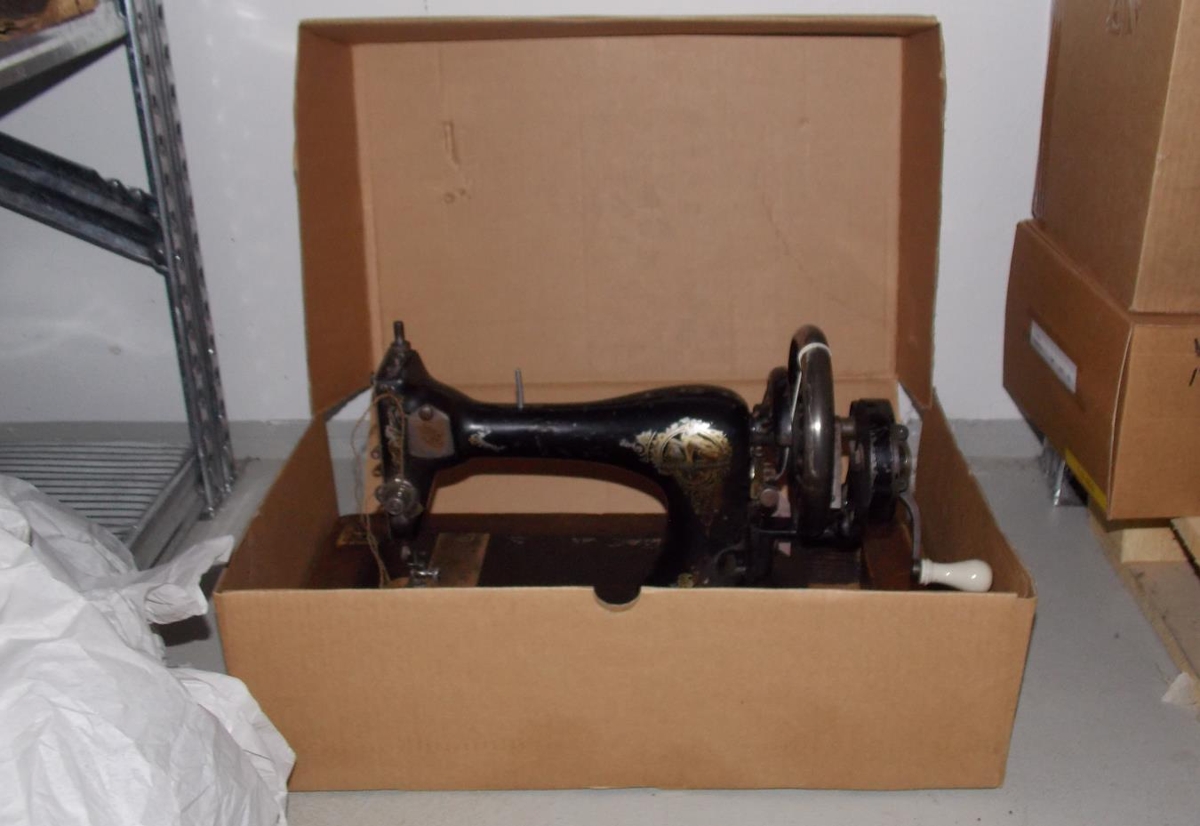 Svört. Mjög gömul, öll einkenni og útflúr mjög máð. Kassalaus. Úr eigu Sigríðar Árnabjörnsdóttur frá Ketilsstöðum á Völlum. Talin vera með fyrstu saumavélum á Héraði, um eða yfir 100 ára.