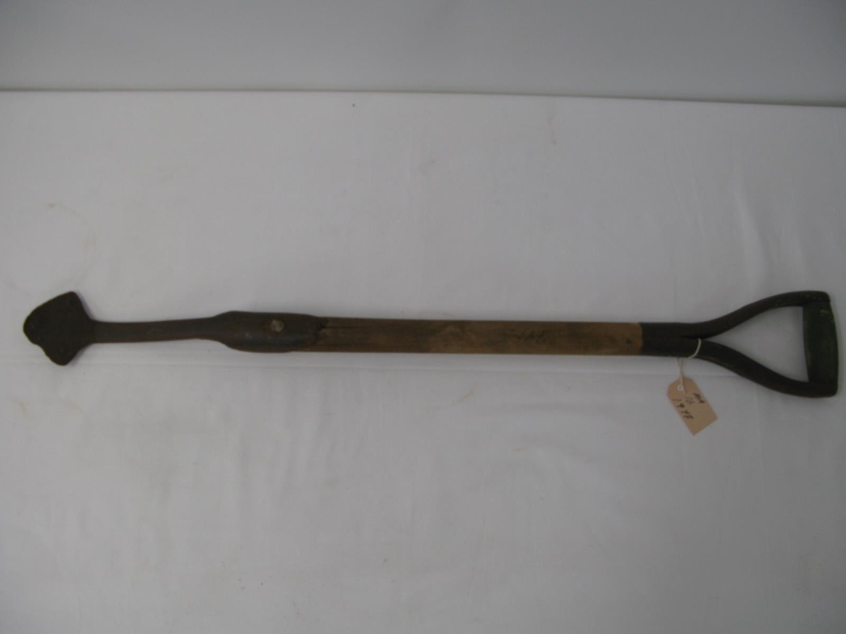 Með sprungnu viðarskafti. Smíðaður í Ólafsdal hjá Torfa. Magnús Stefánsson, faðir gefanda, lét mann sem var við nám í Ólafsdal útvega sér spaðann þaðan. Aðeins falurinn er upprunalegur, en blað og skaft setti Sigmar. Upprunalegt skaft eða það sem Sigmar man fyrst eftir var af svipaðri lengd og núverandi skaft.