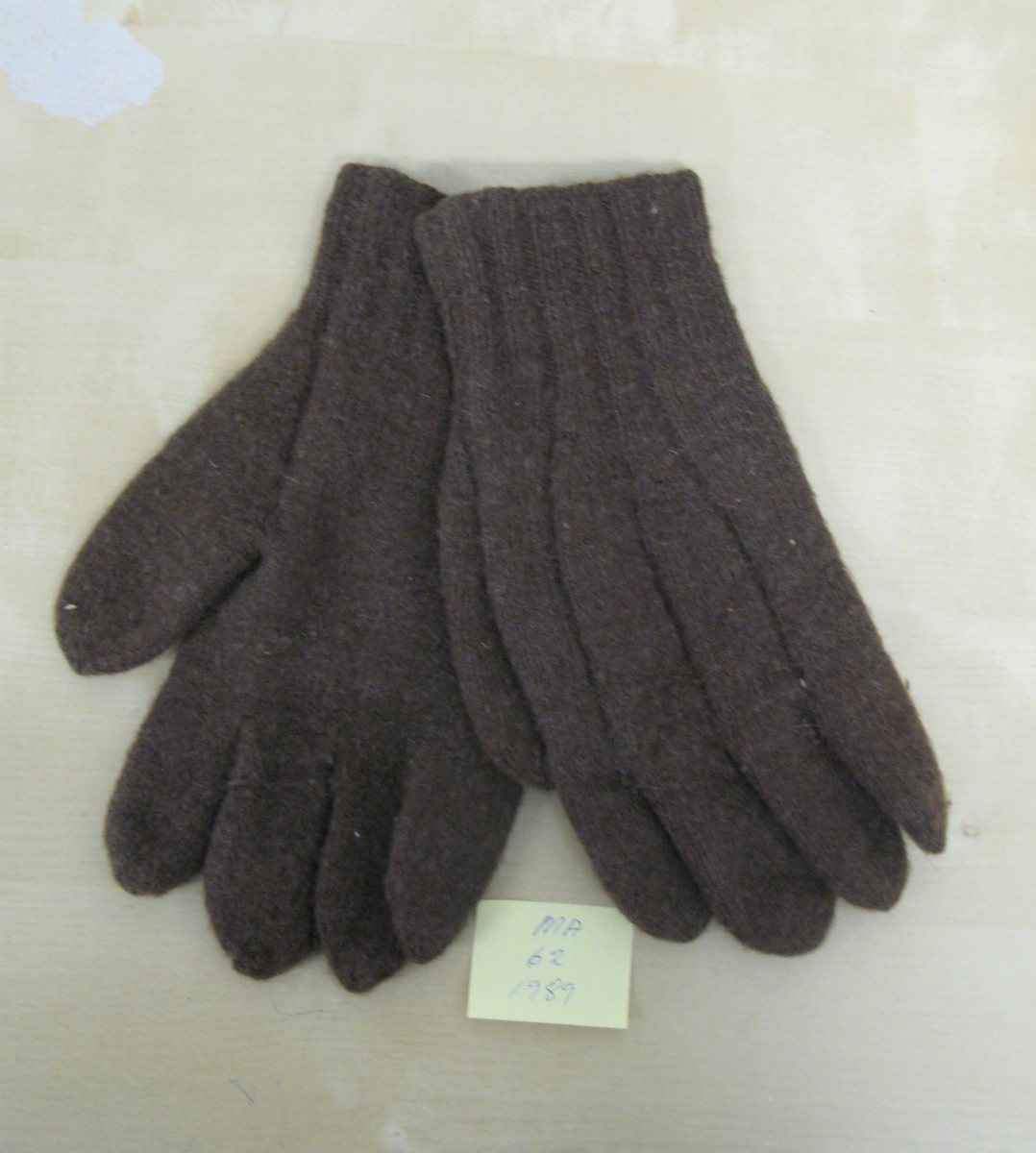 Mórauðir fingravettlingar. Sigmar átti mórauðan sauð sem gekk úr ullinni eitthvert vor. Móðir hans hirti ullina, þvoði, spann og prjónaði vettlingana.