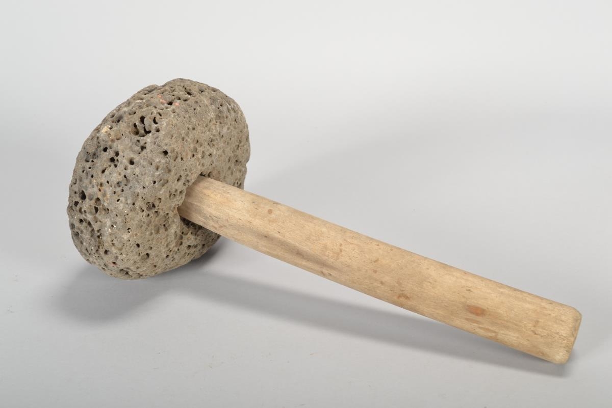 Harðfiskssleggja var notuð til að berja með skreið og harðfisk. Sleggja þessi er gerð úr tilhöggnu, mjög holóttu grágrýti og á hana er sett skaft úr viði.