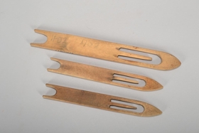 Fimm netanálar úr þunnum viði misstórar og ein úr plasti 4mm þykk.