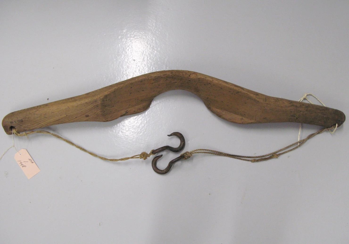 Tréraftur fremur léttur, með bandspottum sitt hvoru megin með járnkrókum á endunum. Til að bera vatsnfötur