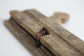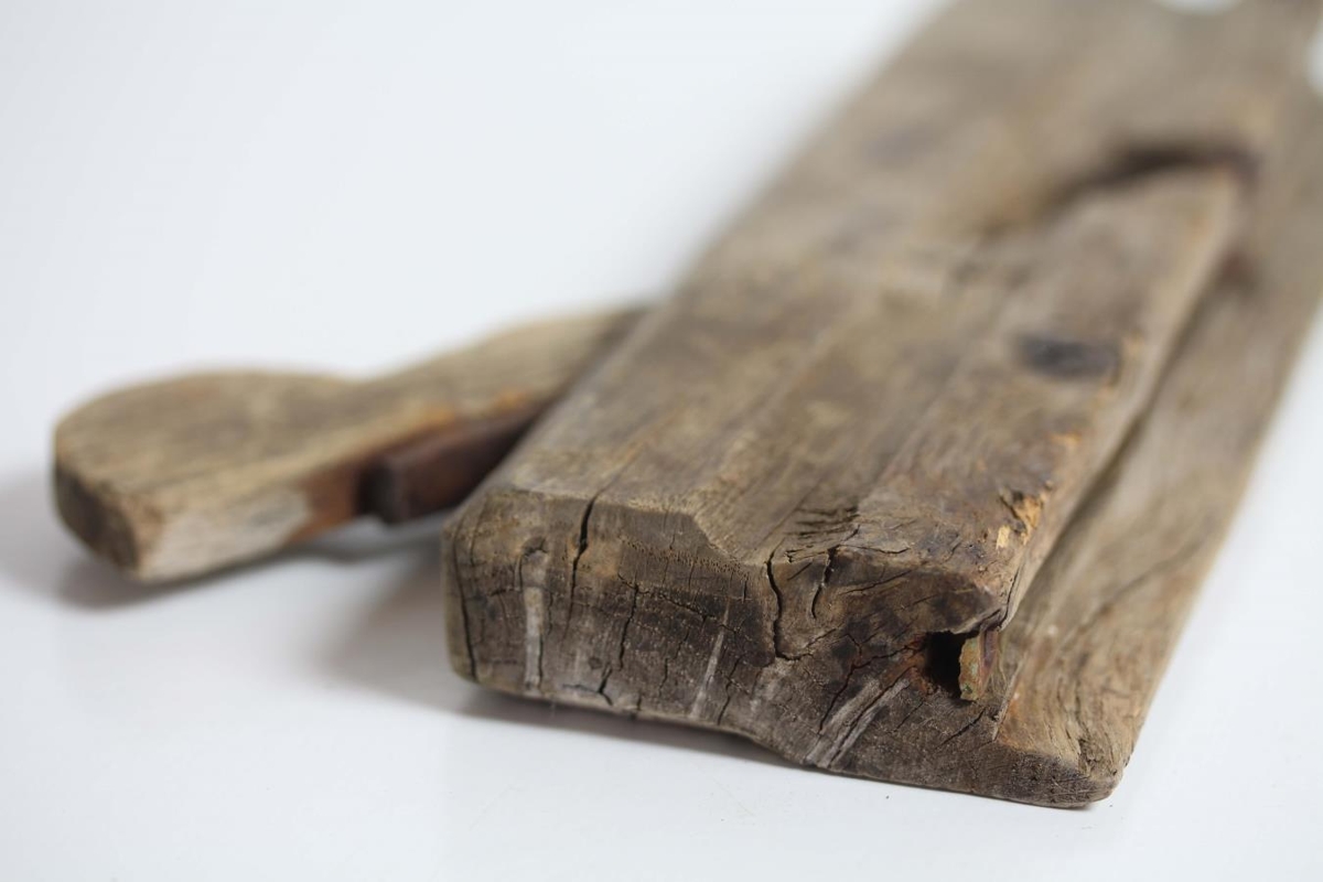 Plóghefill úr rekavið. "Bitar" festir saman með járnnöglum.