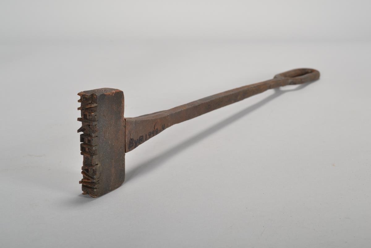Brennimerki frá Keflavík h/f með koparhaus, skaft úr járni með ílangri lykkju á enda, kantað