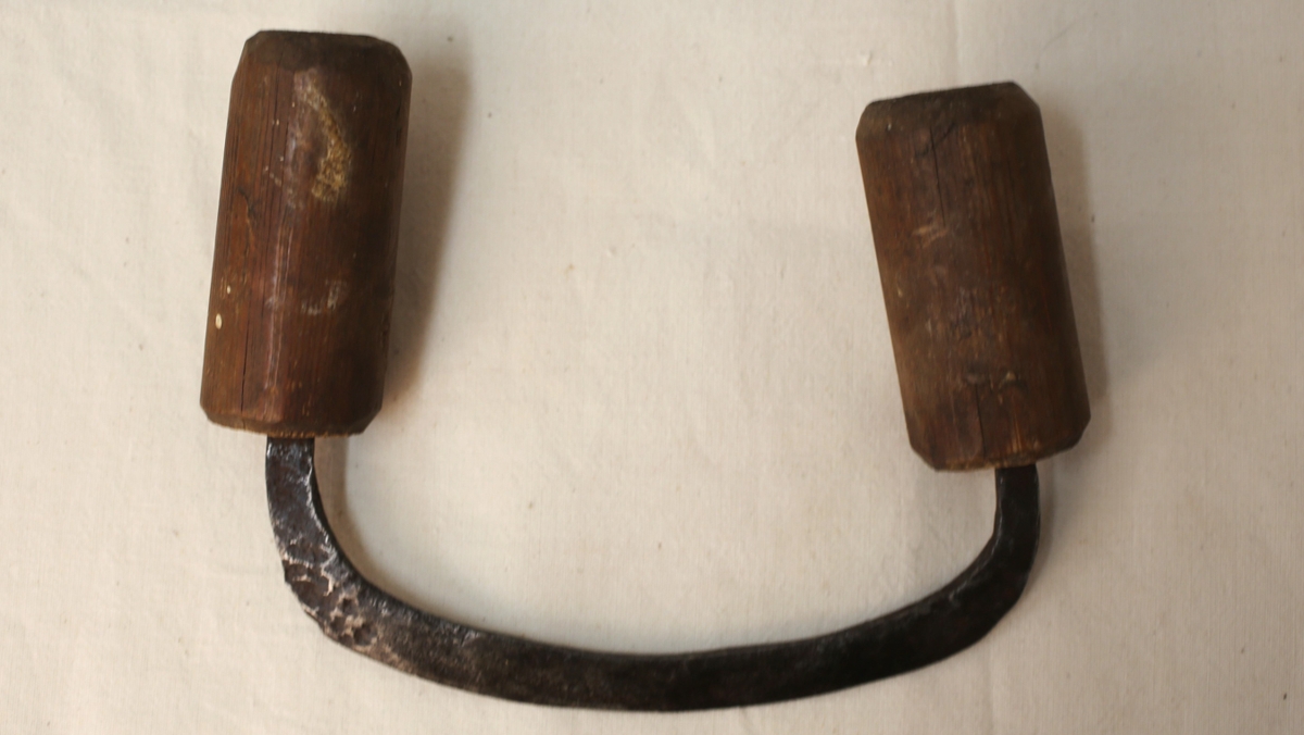 Bitjárn með tveimur tréhöldum. Tóbaks eða grasajárn úr búi Karls Jónssonar.