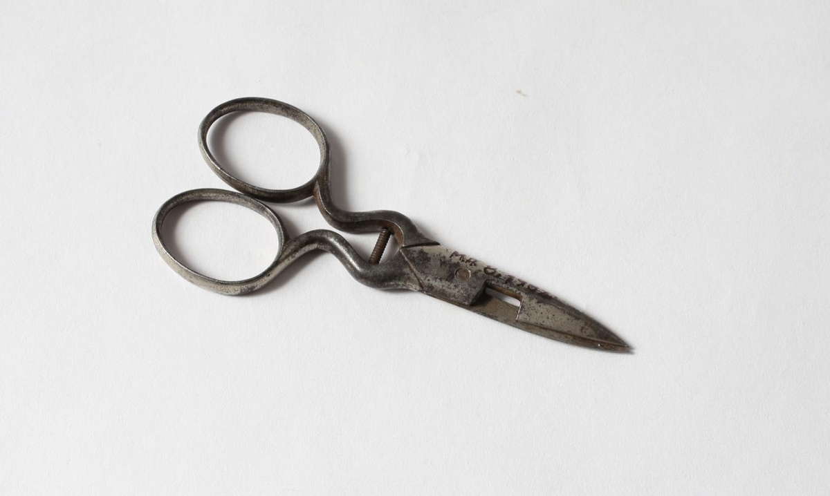 Lítil og nett gataskæri en efst á kjaftinu er hak í blöðunum.