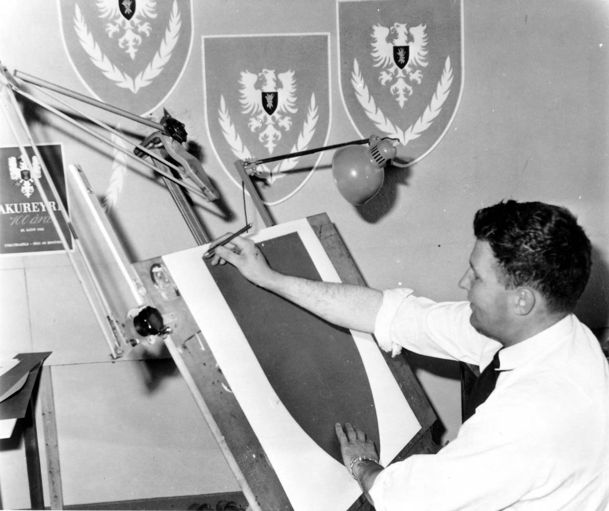 Hönnun afmælismerkis Akureyrarbæjar 100 ára.